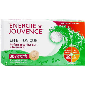 ENERGIE DE JOUVENCE Effet Tonique pas cher, est un complément alimentaire à base de vitamines B et C, minéraux et Cola, en comprimés à croquer, en vente dans votre parapharmacie en ligne à prix pas cher.