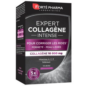 Expert Collagène Intense de Forte Pharma pas cher, le complément alimentaire anti-âge en sticks arômatisés aux fruits de la passion pour corriger les rides dans votre parapharmacie en ligne à prix pas cher.