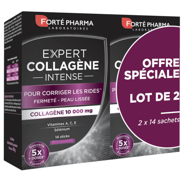 Expert Collagène Intense de Forte Pharma pas cher, le complément alimentaire en sticks aromatisés au maracuja dans votre parapharmacie en ligne à prix pas cher.