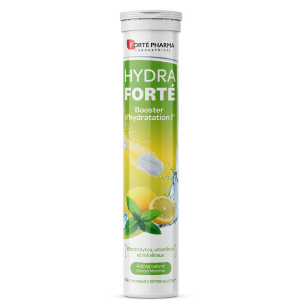 FORTE PHARMA HYDRA FORTÉ CITRON MENTHE 24 COMPRIMÉS est en vente en ligne sur le site de votre parapharmacie à prix pas cher. Offrez à votre corps une sensation de fraîcheur et de confort avec cette formule effervescente qui allie goût agréable et efficacité.