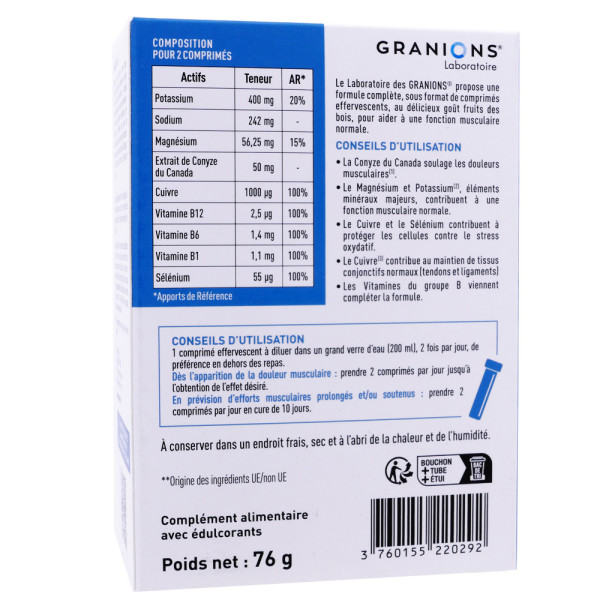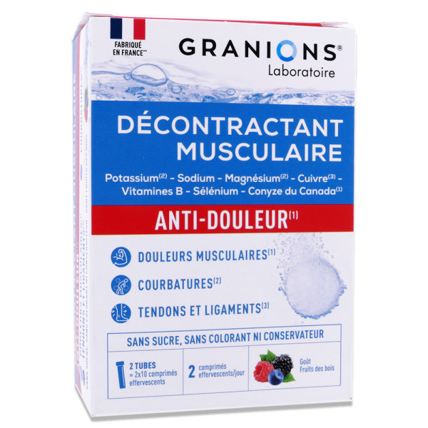 GRANIONS DECONTRACTANT MUSCULAIRE ANTI-DOULEUR 20 COMPRIMES EFFERVESCENTS est disponible en vente en ligne à prix pas cher sur Beautyshop.