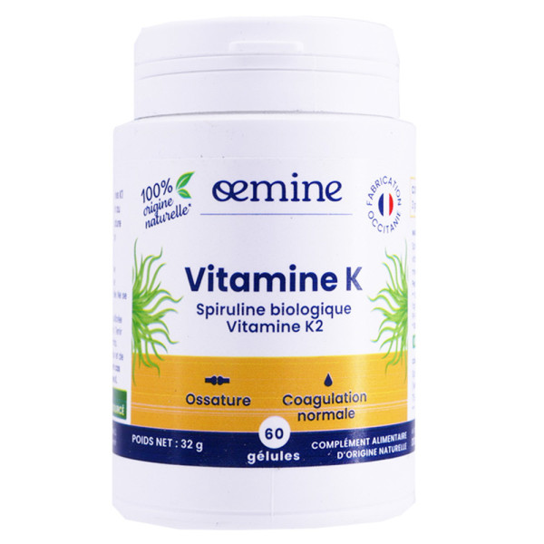 OEMINE VITAMINE K est un complément alimentaire proposé par le laboratoire OEMINE. Spécialement formulé pour répondre aux besoins de votre organisme, ce produit contient une concentration optimale de vitamine K, un nutriment essentiel pour le bon fonctionnement de vos os et de votre système circulatoire.