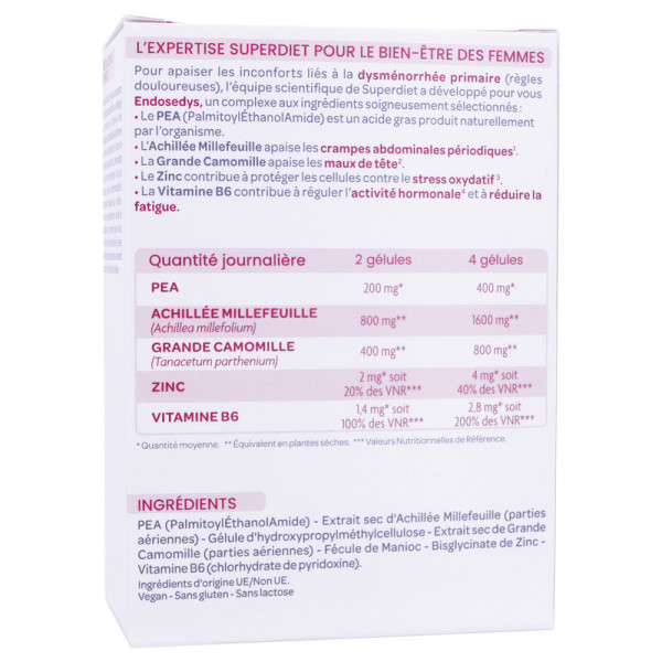 SUPERDIET ENDOSEDYS REGLES DOULOUREUSES 60 GELULES est disponible en vente en ligne à prix pas cher sur Beautyshop.