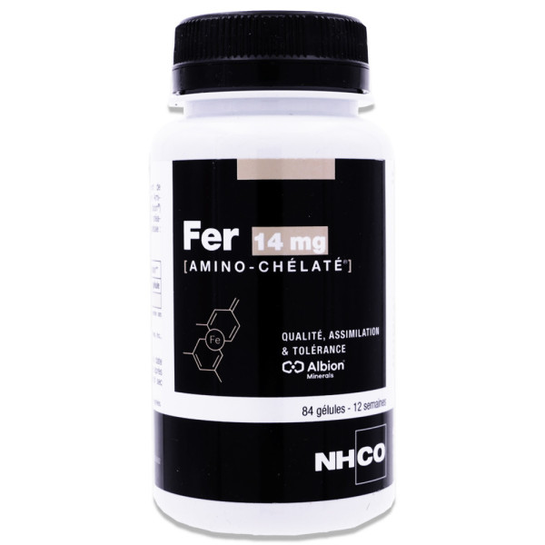 FER Amino Chélaté 14MG du laboratoire NHCO Nutrition, le complément alimentaire issu de la recherche en micronutrition conditionné en gélules dans votre parapharmacie en ligne, du Fer Amino-Chélaté sous forme bisglycinate qui permet une haute absorption, tolérance digestive et biodisponibilité.
