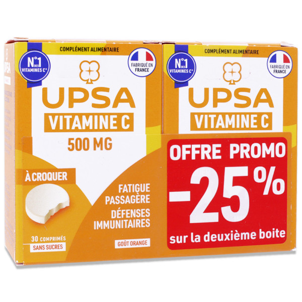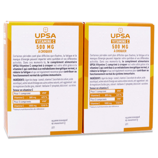 UPSA VITAMINE C 500MG 2X30 COMPRIMES A CROQUER est disponible en vente en ligne à prix pas cher sur Beautyshop.
