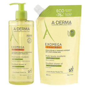 ADERMA EXOMEGA HUILE LAVANTE EMOLLIENTE 2X500ML est disponible en vente en ligne à prix pas cher sur Beautyshop.