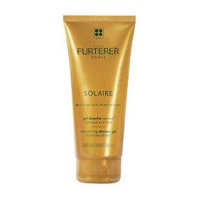 Le Shampooing-douche Cheveux Corps solaire de RENE FURTERER, le rituel d’exception capillaire pour laver en douceur et réparer les cheveux et la peau sensibilisés par le soleil.