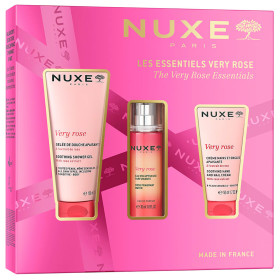 La marque NUXE propose ce coffret, qui se distingue par ses textures délicates et ses ingrédients soigneusement choisis. La Gelée de douche apaisante Very Rose nettoie la peau en douceur grâce à ses agents nettoyants doux tout en laissant une agréable senteur florale. L'Eau Voluptueuse Parfumante Very Rose offre une brume légère et rafraîchissante qui enveloppe la peau d'un parfum subtil et délicat de rose. La Crème Mains et Ongles Très Rose nourrit et protège la peau des mains tout en renforçant les ongles grâce à sa formule enrichie en huile de rose et autres agents émollients.