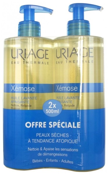 L’Huile lavante apaisante en lot de 2 pas cher d’URIAGE, le soin de toilette quotidienne pour visage et corps formulé pour nettoyer et apaiser en douceur les peaux très sèches et atopiques des bébés, des enfants et des adultes, en ligne dans votre parapharmacie pas chère.