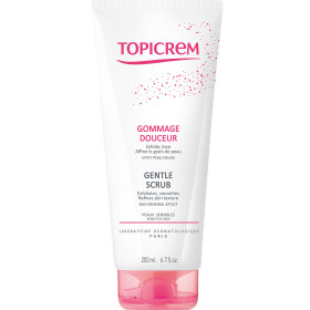 Le gommage douceur Visage & Corps de TOPICREM, un soin de beauté pour le corps et le visage des peaux sensibles.