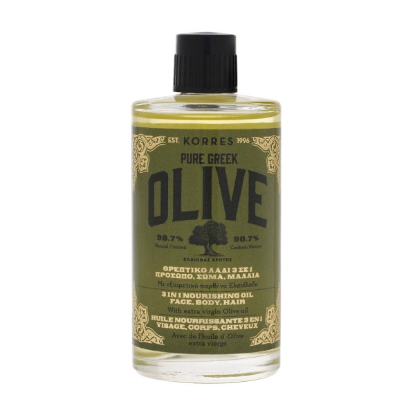 Les soins KORRES à base d’ingrédients naturels respectent la peau pour redonner beauté, confort au quotidien. L’Huile Nourrissante 3 en 1 Pure Greek Olive riche en huile d’olive vierge prémium issu d’extrait d’olivier crétois, est un soin doux pour la peau et les cheveux qui éveille les sens. Non grasse et soyeuse, elle va agir sur l’hydratation de l’épiderme, le confort en nourrissant la peau et la chevelure, et sur la prévention des signes du vieillissement cutané. Après le soin, la peau retrouve douceur, souplesse. Les cheveux sont soyeux et pleins de santé.