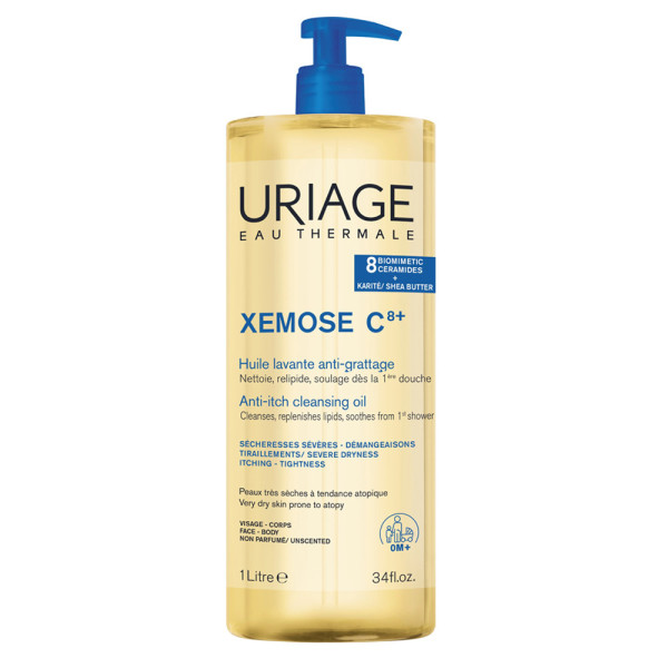 URIAGE XEMOSE HUILE LAVANTE APAISANTE 1L est en vente en ligne sur le site de votre parapharmacie à prix pas cher, offrant une solution nettoyante apaisante pour les peaux très sèches à tendance eczéma atopique, adaptée à toute la famille dès la naissance pour le visage et le corps.