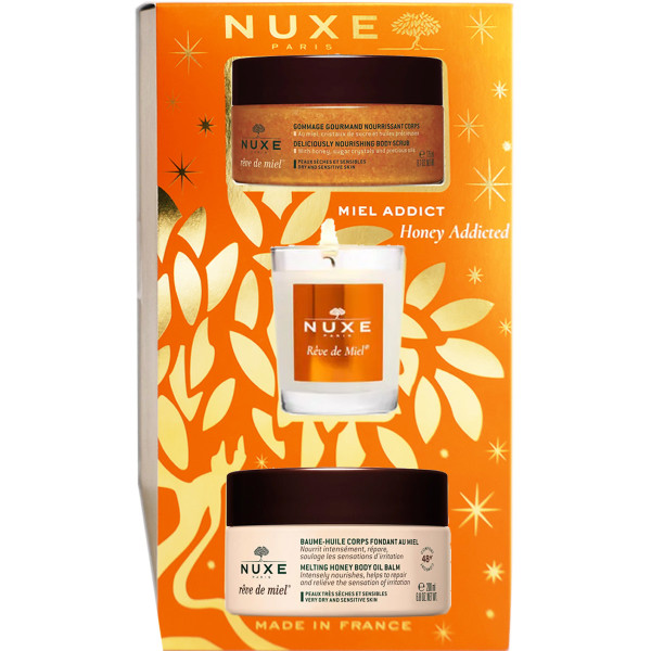 Le Coffret NUXE « Miel Addict », contient 2 produits à la fragrance mythique de la gamme Rêve de Miel de NUXE aux pouvoirs réconfortants et gourmands pour prendre soin de sa peau : Gommage Nourrissant Corps (175ml) et Rêve de Miel Baume-huile Corps Fondant au Miel (200ml) + Rêve de Miel Bougie d’intérieur (70g). Dans votre parapharmacie en ligne à prix discount. Tous types de peaux Corps. Dans votre parapharmacie en ligne à prix pas cher