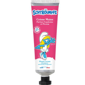 Les Crèmes Mains pas cher du COMPTOIR DU BAIN, des crèmes pour les mains à l’effigie « Schtroumphs » pour des instants de plaisir et prendre soin de la peau en parfumant agréablement la peau. Pivoine - Framboise « Schtroumphette »