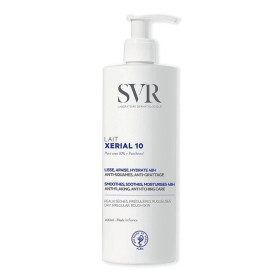 XERIAL Lait corps hydratation de SVR non gras, facile à appliquer et vite absorbé, est un soin complet qui répare hydrate et lisse la peau fragile avec squames pour 48 heures. Grâce à sa technologie innovante et brevetée Urée pure, ce soin protège la peau des agressions extérieures, élimine les squames, répare, lisse, nourrit, hydrate intensément et apaise la peau dès l’application. Testé sous contrôle dermatologique, sans parfum, sans paraben.