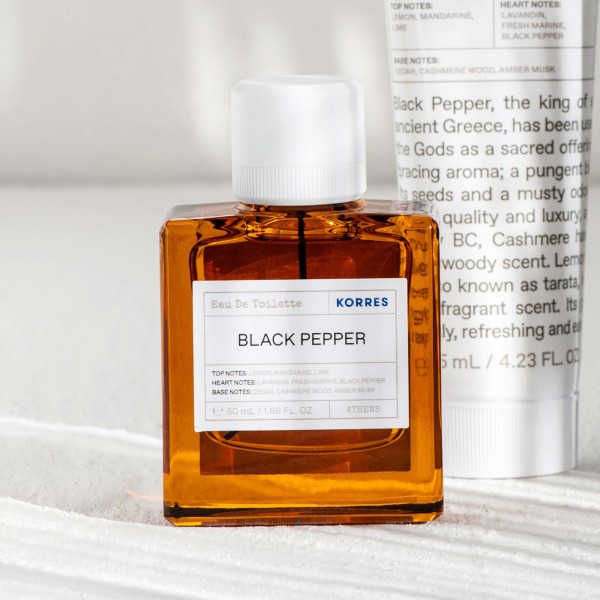Eau de Toilette Homme Black Pepper 50ml en vente en ligne sur le site de votre parapharmacie à prix pas cher. Découvrez l'Eau de Toilette Homme Black Pepper 50ml, un produit de la marque Korres, réputée pour ses produits de qualité.