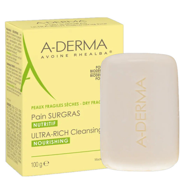 Pain surgras d’ A-DERMA à prix pas cher dans votre parapharmacie en ligne, nettoie tout en douceur les peaux sensibles, très délicates et sèches du visage et du corps des enfants et des adultes.