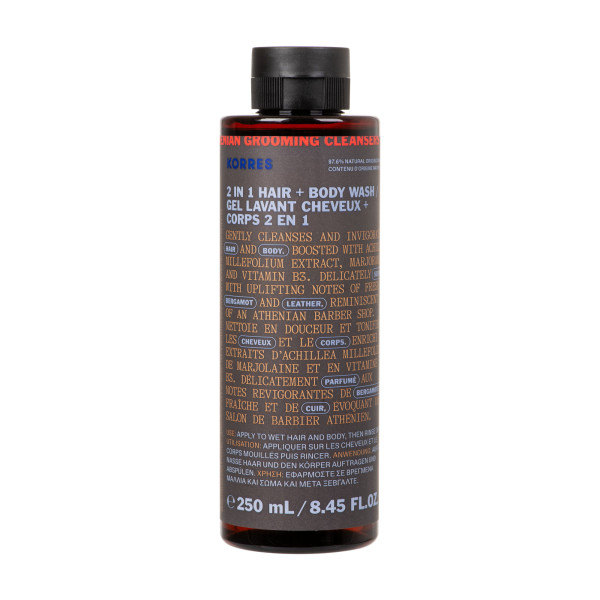 KORRES propose ce gel lavant 2 en 1 conçu pour les hommes, qui nettoie efficacement cheveux et corps. Sa texture légère et moussante offre une sensation de fraîcheur et de propreté. L'extrait d'Achillea Millefolium contribue à apaiser la peau, tandis que le Niacinamide aide à maintenir l'hydratation naturelle. L'extrait de marjolaine soutient la fonction de barrière cutanée, pour une peau douce et revitalisée.