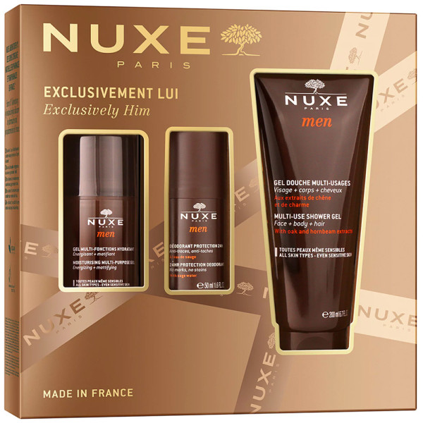 NUXE COFFRET MEN NOEL 2025 est en vente en ligne sur le site de votre parapharmacie à prix pas cher, comprenant un gel multi-fonctions hydratant pour peau masculine et un usage quotidien.