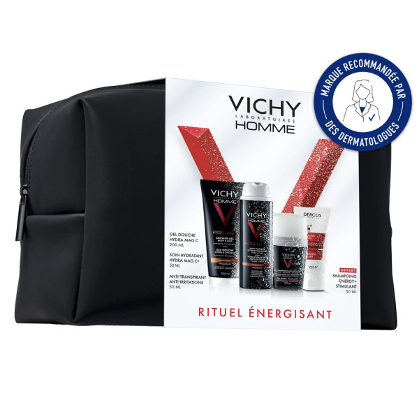VICHY TROUSSE HOMME RITUEL ENERGISANT est en vente en ligne sur le site de votre parapharmacie à prix pas cher, proposant un ensemble de soins énergisants pour la peau des hommes.