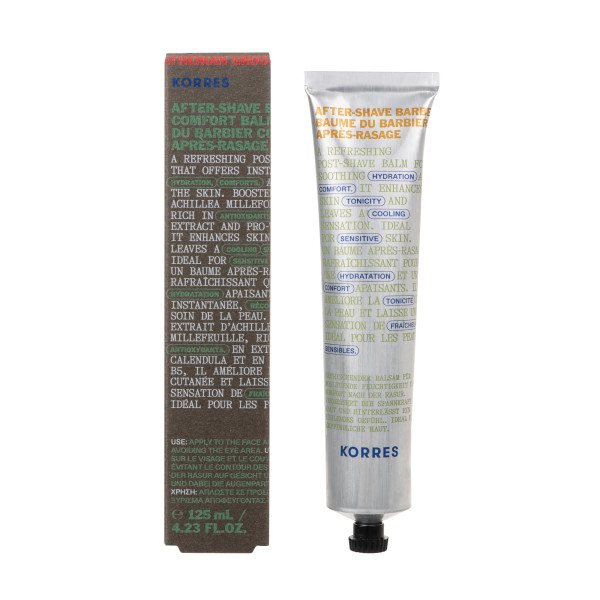 KORRES, marque grecque reconnue pour ses formulations naturelles, propose ce baume après-rasage qui aide à maintenir l'hydratation et à apaiser la peau après le rasage. Sa texture légère et non grasse est rapidement absorbée, laissant la peau douce et confortable. Enrichi en extrait d'Achillea Millefolium, il contribue à soutenir la fonction barrière de la peau. Les extraits de calendula et de ginseng participent à apaiser et à revitaliser la peau, tandis que la provitamine B5 aide à maintenir l'hydratation naturelle de l'épiderme.