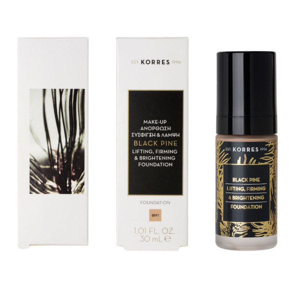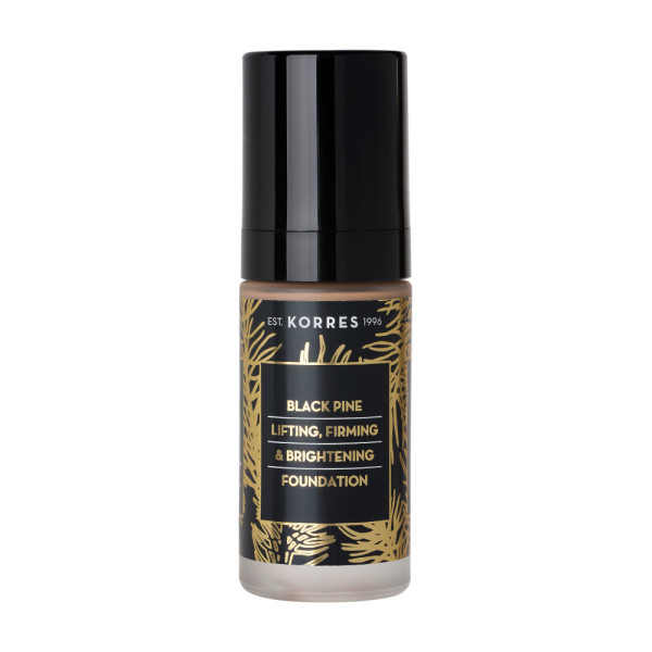Les soins Lift-fermeté de KORRES sont utiles pour préserver la peau et estomper les signes de l'âge déjà installés par sa composition riche en ingrédients naturels à base de pin noir, quercétine et chêne pour une action raffermissante. Le Fond de Teint Pin noir des laboratoires KORRES, est un véritable soin de beauté qui allie efficacité d’un soin anti-âge, protecteur et embellisseur au plaisir esthétique du maquillage. Sa texture fluide et non grasse, permet de travailler ce fond de teint très facilement pour une application optimale Concentré en extraits végétaux, et huile d’argan, il va apporter éclat, protection et élasticité à la peau. Sa formule couvre parfaitement les imperfections de la peau lisse pour estomper les rides, et protège la peau des effets néfastes du stress oxydatif pour toute la journée. Sa composition en fait le soin de maquillage du teint incontournable lumineux des peaux matures. Le visage retrouvera son éclat pour une peau plus jeune et un visage frais et lumineux pendant 8 heures. Testé sous contrôle dermatologique.