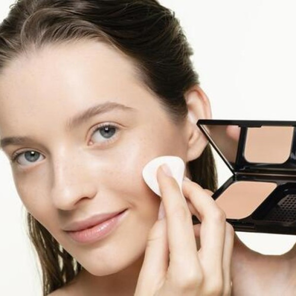 Appliquez sur l'ensemble du visage à l'aide de la houppette fournie dans le boîtier