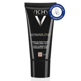 Le fond de teint Vichy Dermablend 30 Beige pas cher, un fond de teint correcteur dans votre parapharmacie en ligne pas cher, pour un teint unifié et lumineux pendant 16 heures. Indiqué en cas de teint irrégulier, cernes, rougeurs.
