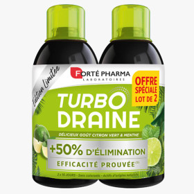 TURBODRAINE de Forte Pharma à prix pas cher, le complément alimentaire en solution à boire sans colorant dans votre parapharmacie en ligne pas cher, aux extraits de Reine des Prés et de Thé vert disponible en vente en ligne sur le site de votre parapharmacie à prix pas cher.