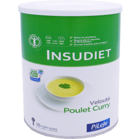 Les produits INSUDIET des laboratoires PILEJE sont élaborés en collaboration avec des professionnels de santé, à base de protéines et nutriments essentiels pour retrouver un bon équilibre alimentaire. Le Velouté INSUDIET aux senteurs exotiques pour son délicieux goût de poulet et de curry, est une préparation hyperprotéinée hypocalorique instantanée rapide et facile à préparer, pour retrouver un bon équilibre alimentaire dans le cadre d’un régime alimentaire, et préserver sa masse musculaire. Cette préparation qui se substitue à un repas, est riche en 12 vitamines 10 minéraux, oméga 3, et protéines, pauvre en matières grasses et en sucres, afin de faire un régime minceur en douceur tout en préservant sa santé.