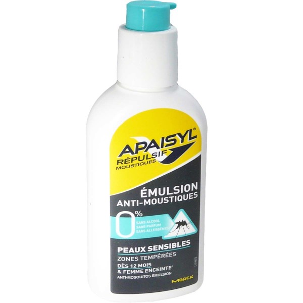 Emulsion anti-moustiques Peaux sensibles d’APAISYL pas cher, une solution pour protéger des piqûres d’insectes. A partir de 12 mois. Pour toute la famille même femmes enceintes Adapté aux peaux sensibles