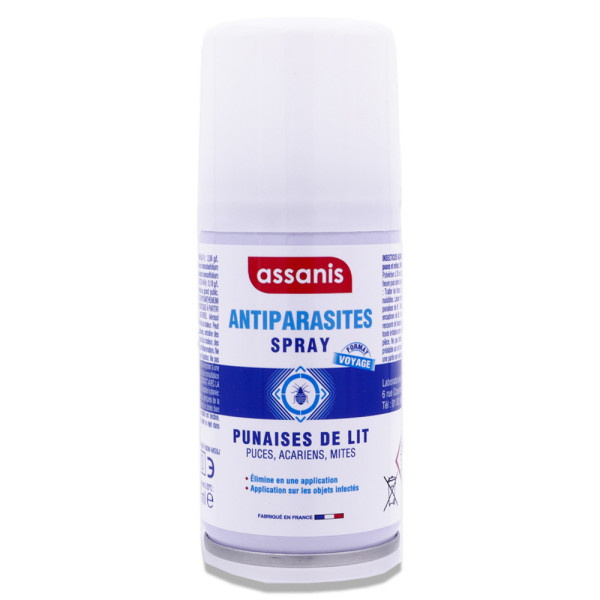 ASSANIS ANTIPARASITES SPRAY AEROSOL 75ML est en vente en ligne sur le site de votre parapharmacie à prix pas cher, conçu pour protéger les surfaces textiles contre les infestations de parasites tels que les puces, acariens, mites et punaises de lit.