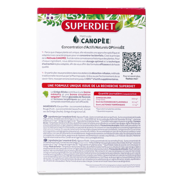 SUPERDIET GINKGO BILOBA 20 AMPOULES est disponible en vente en ligne à prix pas cher sur Beautyshop.