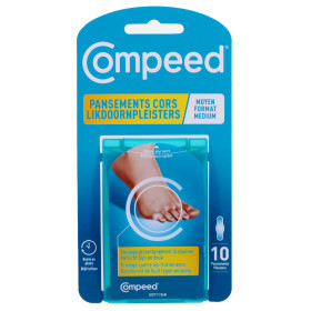 COMPEED PANSEMENTS CORS MOYEN FORMAT X10 est en vente en ligne sur le site de votre parapharmacie à prix pas cher, en tant que pansements de protection pour les pieds, adaptés aux zones soumises aux frottements.