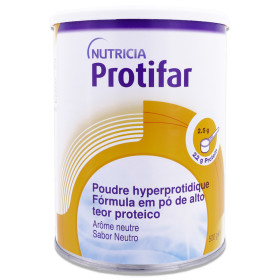 Information nutritionnelle par 100g de poudre Nutricia Protifar- Valeurs énergétiques: 380 kcal/1615 kJ- Protéines 89g- Glucides dont <1.5g - Sucres <1.5g - Lactose <1.5g- Lipides dont 2g - saturés 1.5g - monoinsaturés 0.5g - polyinsaturés 0.1gMinéraux par 100 g de poudre Nutricia Protifar- Sodium 100mg- Potassium 120mg- Calcium 1350mg- Phosphore 700mg- Magnésium <20mg- Chlorure 100mg