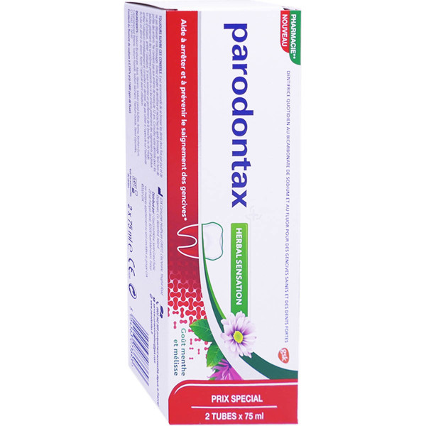 Le dentifrice Parodontax Herbal Sensation à la formule unique, très frais grâce aux extraits de plantes (menthe mélisse, gingembre), associe du bicarbonate de sodium et du fluor pour favoriser la réduction des saignements gingivaux, renforcer les gencives et les tonifier, lutter contre les bactéries et leur prolifération, et lutter efficacement contre les caries en éliminant la plaque dentaire. Le risque de gingivite est diminué et les dents sont propres et lisses.