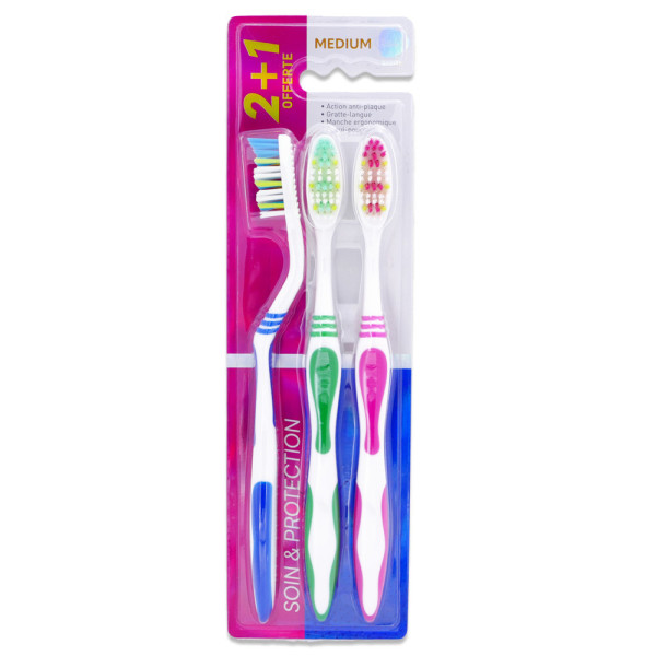 Ref : 3446570000090 - lot de 3 brosse à dents - Coloris et motifs selon disponibilités