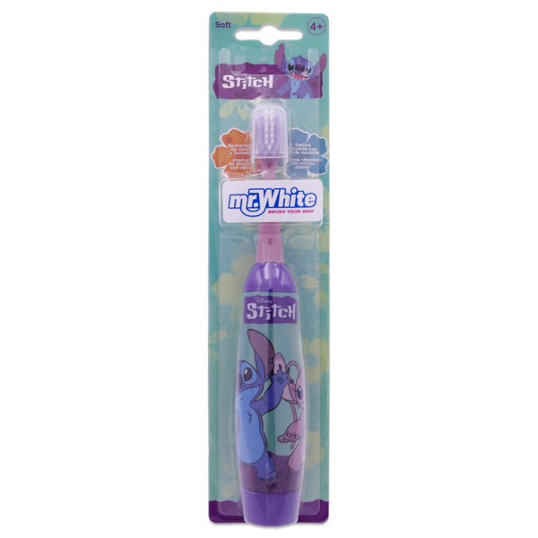 Conçue par la marque Disney, cette brosse à dents vibrante propose une texture ergonomique pour une prise en main facile et agréable. Elle se distingue par ses vibrations douces qui aident à éliminer les impuretés sur les dents et les gencives sans effort. Les poils souples sont adaptés pour un nettoyage délicat, tandis que le design ludique de Stitch rend le brossage des dents plus amusant pour les enfants. Le produit ne contient pas d'ingrédients actifs nécessitant une mention spécifique, car il repose sur une action mécanique pour l'entretien bucco-dentaire.