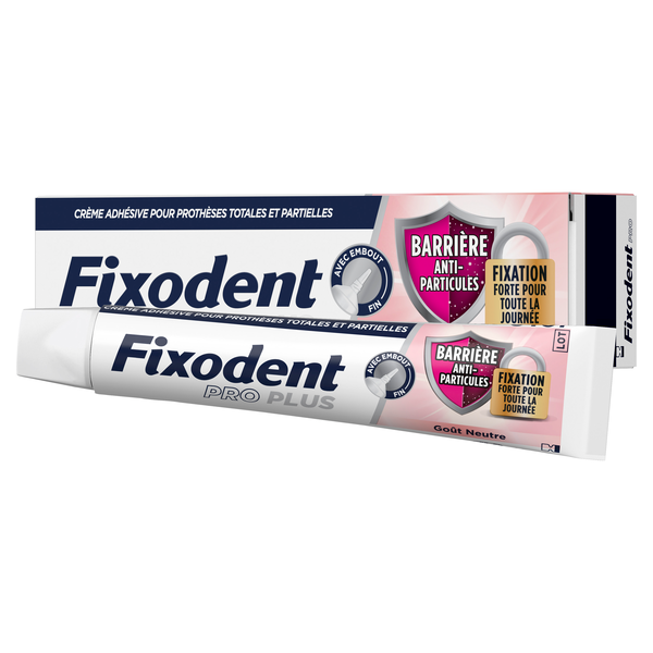 La crème Fixodent Pro Plus Anti-particules dans votre parapharmacie en ligne à prix pas cher, pour une fixation forte et longue durée des prothèses totales et partielles en prenant soin des gencives.
