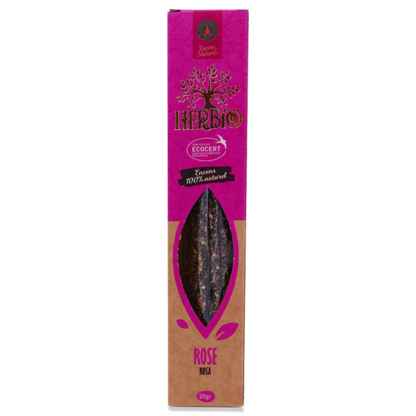 Rose : Poudre Rosa Indica (poudre de rosier du Bengale) 50% Litsea Glutinosa (avocat marron à petites feuilles) 10% Résine de Benjoin 20% Charbon de noix de coco 20% Labellisé