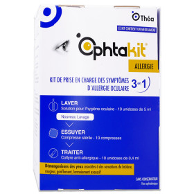 OPHTAKIT ALLERGIE KIT LAVAGE THEAPHY est en vente en ligne sur le site de votre parapharmacie à prix pas cher, conçu pour le soin des yeux en cas d'allergie oculaire.