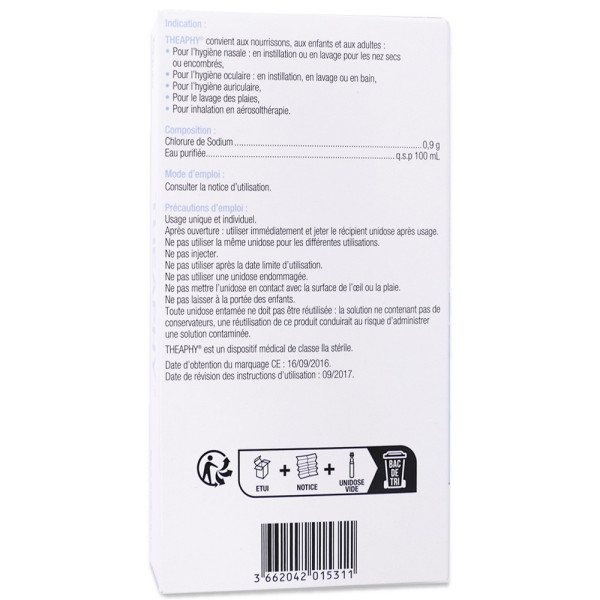 THEAPHY HYGIENE OCULAIRE SOLUTION ISOTONIQUE STERILE 10 UNIDOSES 5ML est en vente en ligne sur le site de votre parapharmacie à prix pas cher, pour l'hygiène oculaire quotidienne de toute la famille, incluant nourrissons, enfants et adultes.