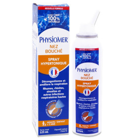 PHYSIOMER NEZ BOUCHÉ SPRAY HYPERTONIQUE 125ML est en vente en ligne sur le site de votre parapharmacie à prix pas cher, offrant une solution naturelle pour soulager les symptômes des pathologies nasales chez les adultes et les enfants dès 3 ans.
