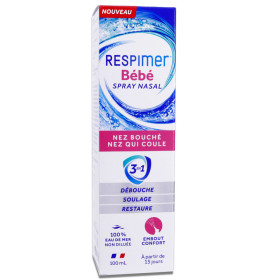 RESPIMER SPRAY NASAL BEBE 100ML est en vente en ligne sur le site de votre parapharmacie à prix pas cher, offrant un soin nasal doux pour les bébés dès 15 jours pour un usage quotidien.
