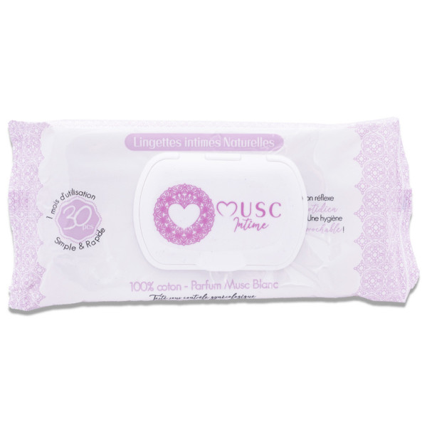 MUSC INTIME 30 LINGETTES INTIMES NATURELLES MUSC BLANC est en vente en ligne sur le site de votre parapharmacie à prix pas cher, pour une hygiène intime douce et délicate, idéale pour un usage quotidien.F