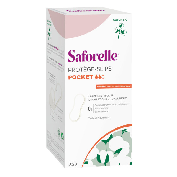 SAFORELLE 20 PROTEGE-SLIPS POCKET COTON BIO : en vente en ligne, sur le site de votre parapharmacie à prix pas cher.