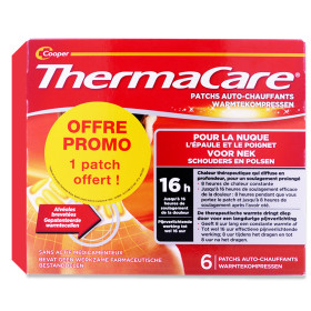 THERMACARE PATCHS AUTO-CHAUFFANTS NUQUE 5 PATCHS + 1 OFFERT est en vente en ligne sur le site de votre parapharmacie à prix pas cher, offrant un confort thermique ciblé pour soulager les tensions au niveau de la nuque.
