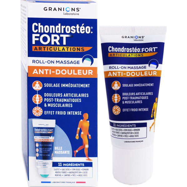 CHONDROSTEO FORT Articulations Roll-on Massage pas cher de GRANIONS, un dispositif médical en roll-on apaisant immédiat sur les articulations et muscles douloureux, dans votre parapharmacie à prix pas cher.