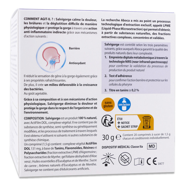 ABOCA SALVIGORGE 20 COMPRIMER A SUCER est disponible en vente en ligne à prix pas cher sur Beautyshop.