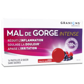 GRANIONS MAL DE GORGE INTENSE 16 PASTILLES GOUT FRUITS ROUGES est disponible en vente en ligne à prix pas cher sur Beautyshop.